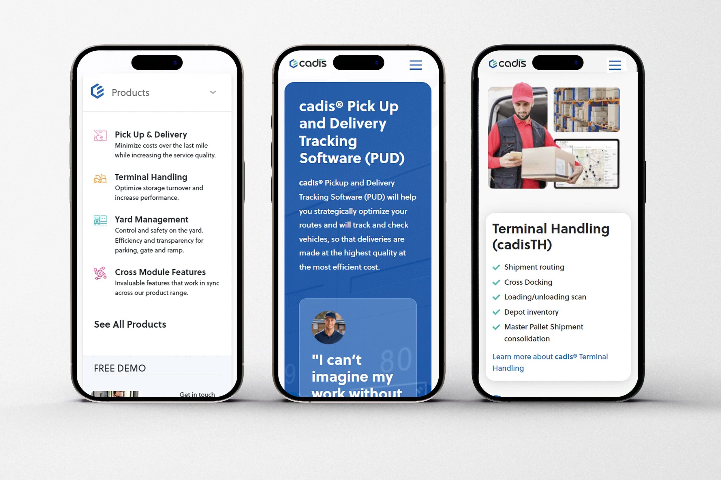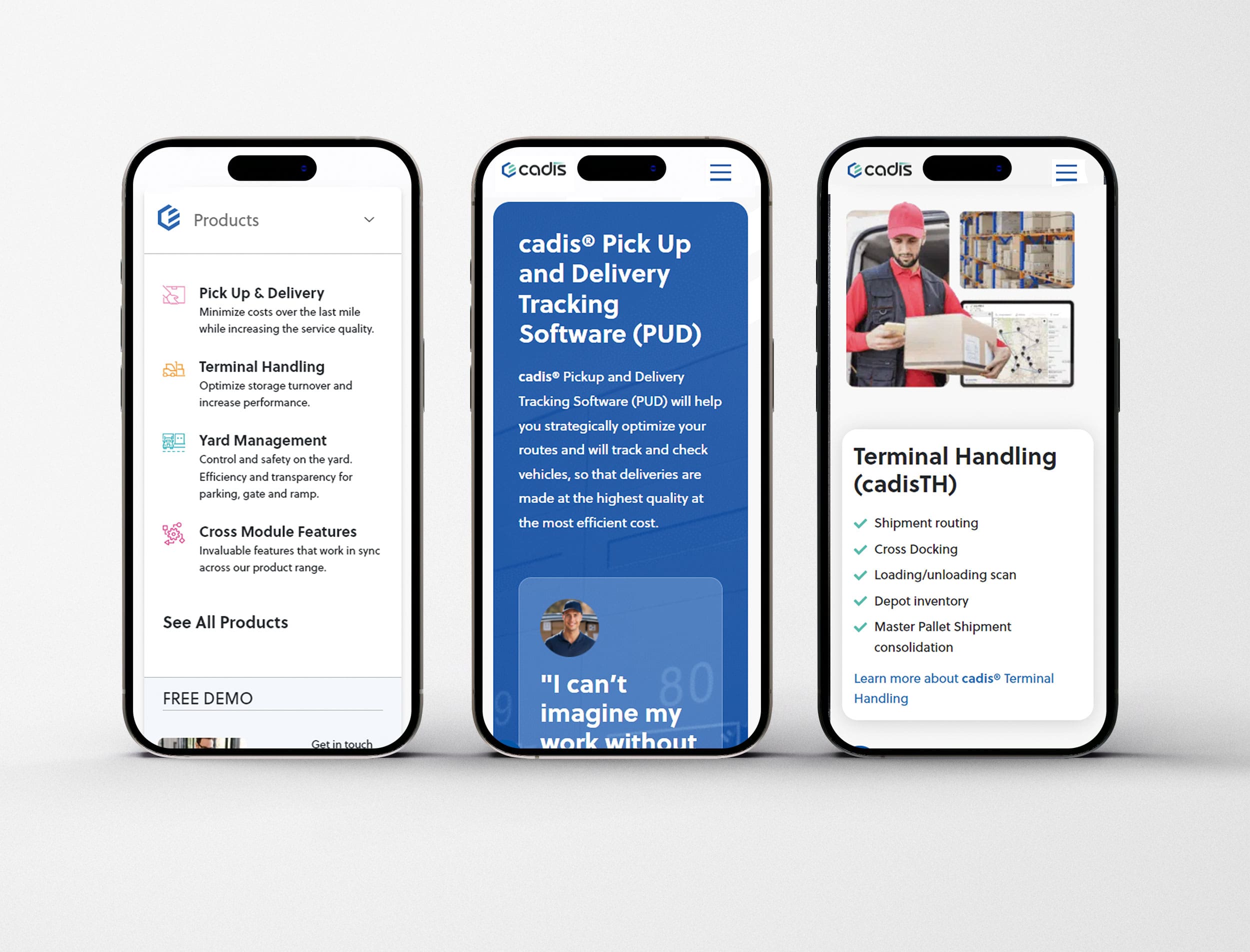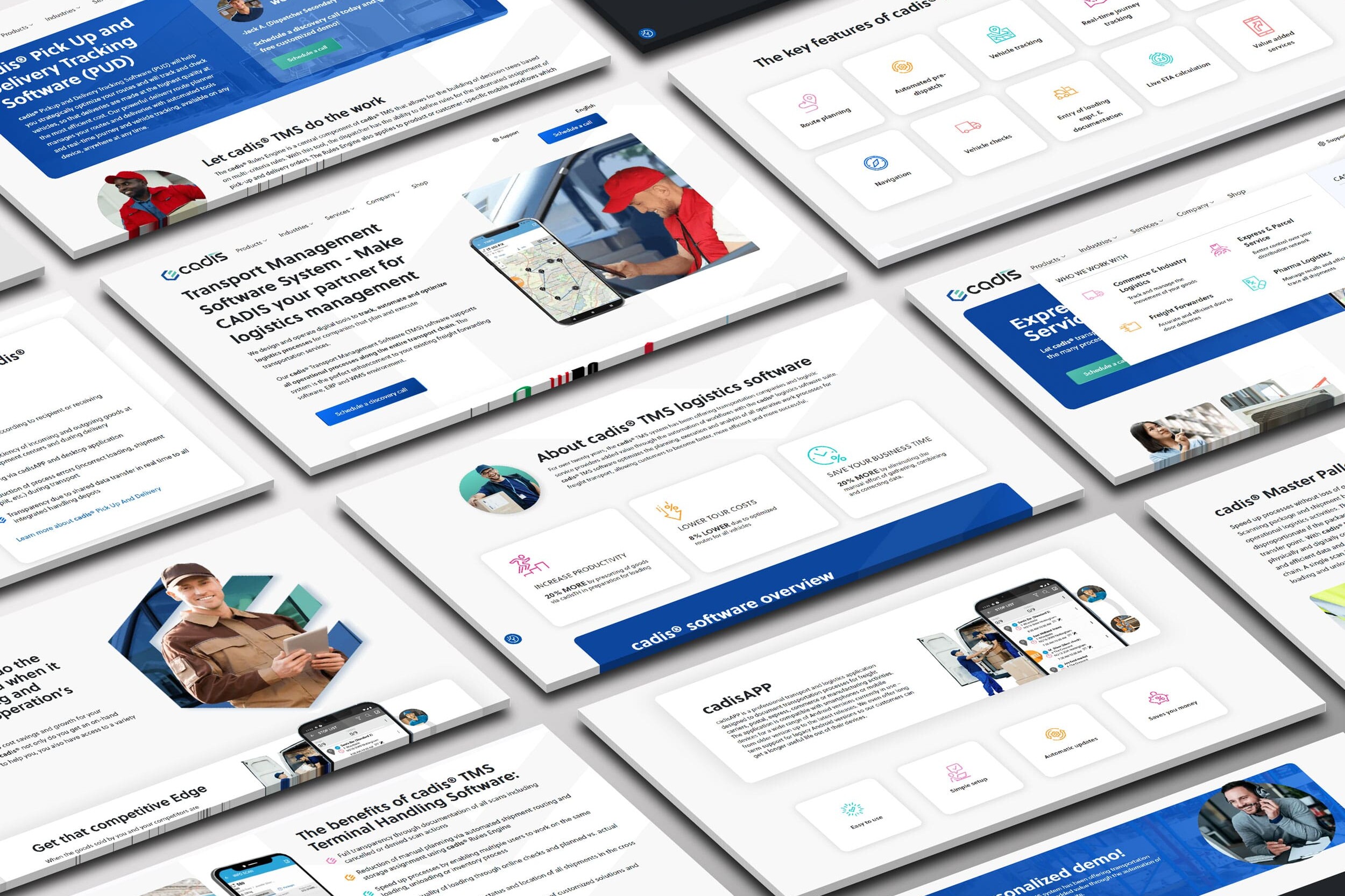 Cadis' website serves as a gateway to its innovative TMS solution, showcasing capabilities and value proposition with cohesive branding.
