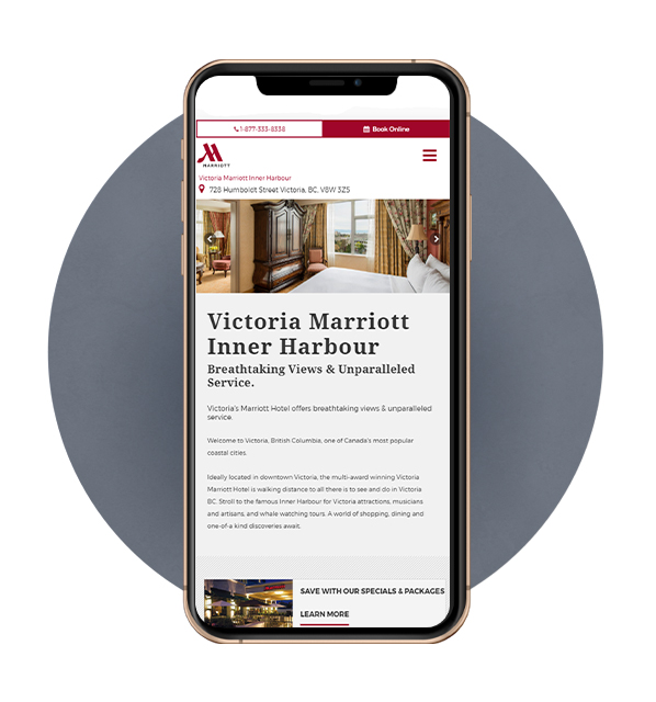 The most important aspect of redesigning the Victoria Marriott's website was making sure the focus was on the booking widget. By following the Marriott's branding guidelines and highlighting the Victoria location's charm, we were able to create a modern and fresh website that proved to improve the amount of reservations per visit.