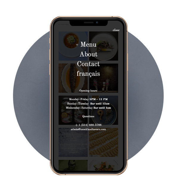 In 2017 the Monkland Tavern approached me to redesign their website. They were looking to move away from a PDF menu, and wanted to offer their customers a more user friendly and interactive way of viewing an up to date menu and wine list. I decided to create the site using Wordpress, in order to give the restaurant the ability to log in and change their menu items with ease. The site now uses beautiful imagery of the establishment as well as a unique layout to attract users attention and get them excited about coming in for dinner.